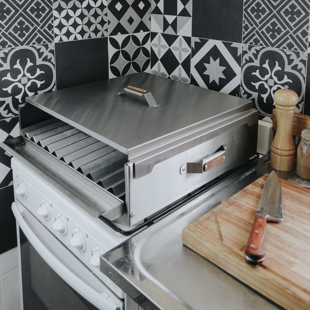 Ejemplo: chapa negra de 2 mm con pintura resistente a 600 °C.