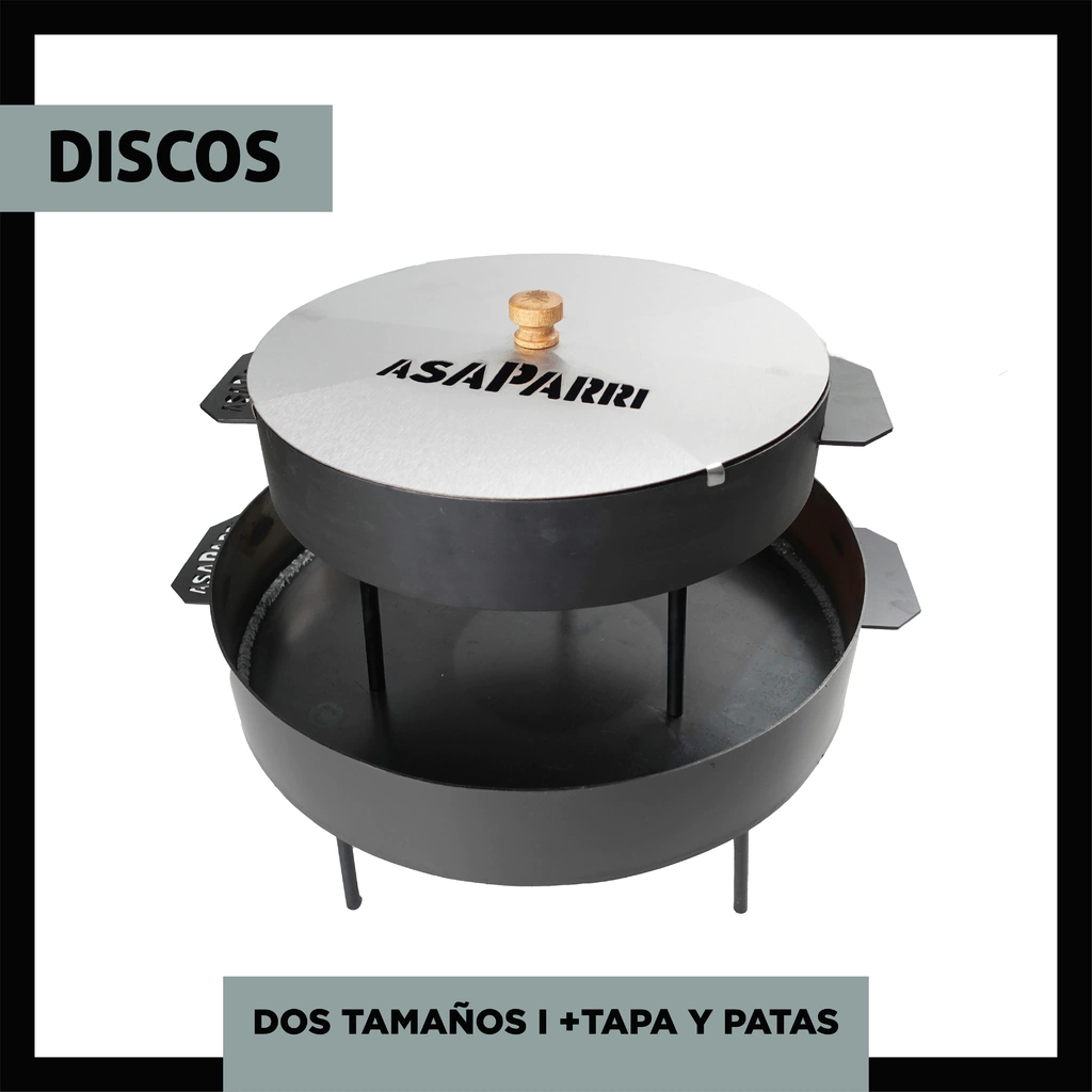 DISCO DE HIERRO CON TAPA Y PATAS. El clásico de la cocina al fuego —ideal para hacer paellas, guisos, pollo al disco, bondiola a la cerveza y todo lo que se te ocurra.