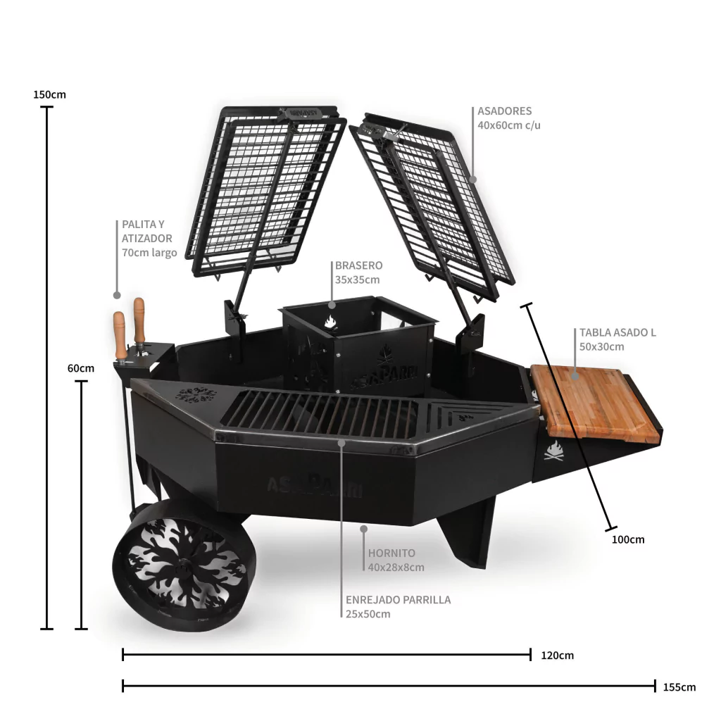 Base del Rodal: 164 × 100 × 65 cm (con soportes y ruedas)
