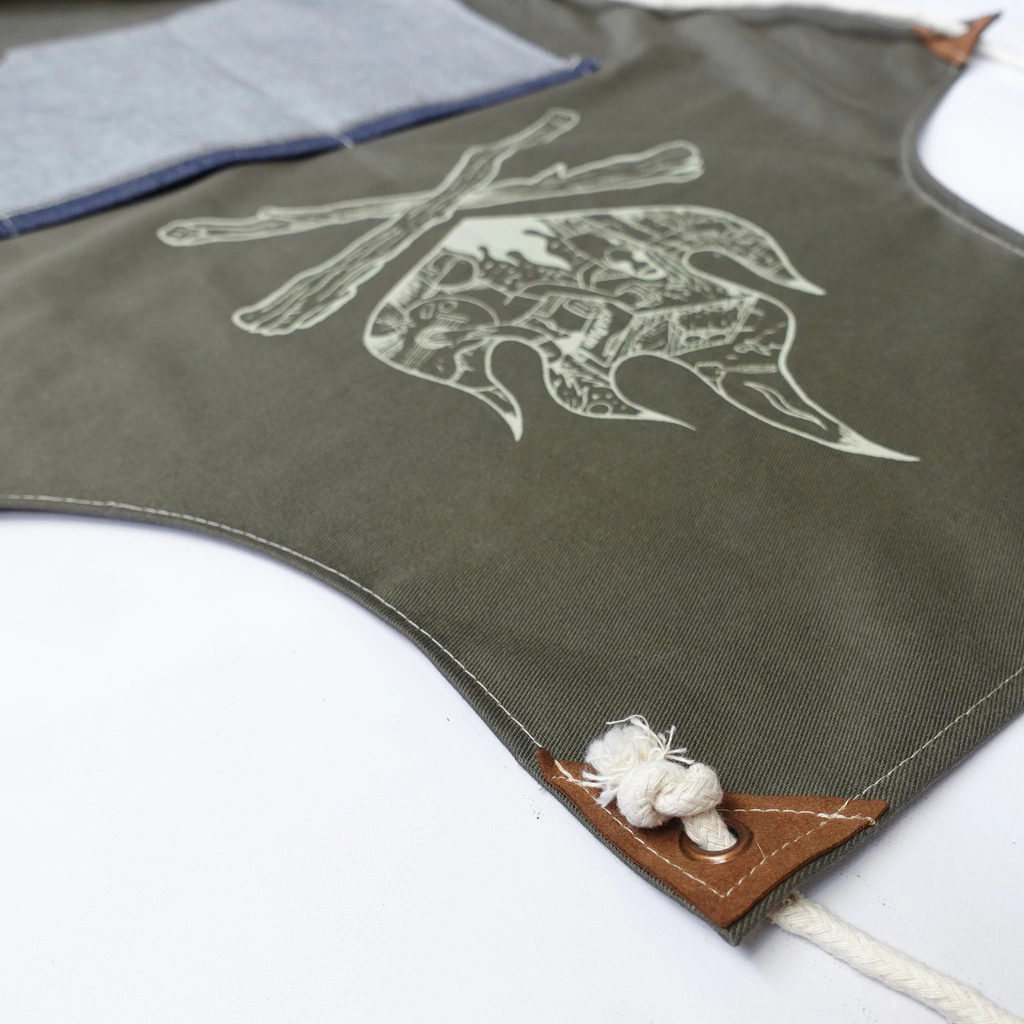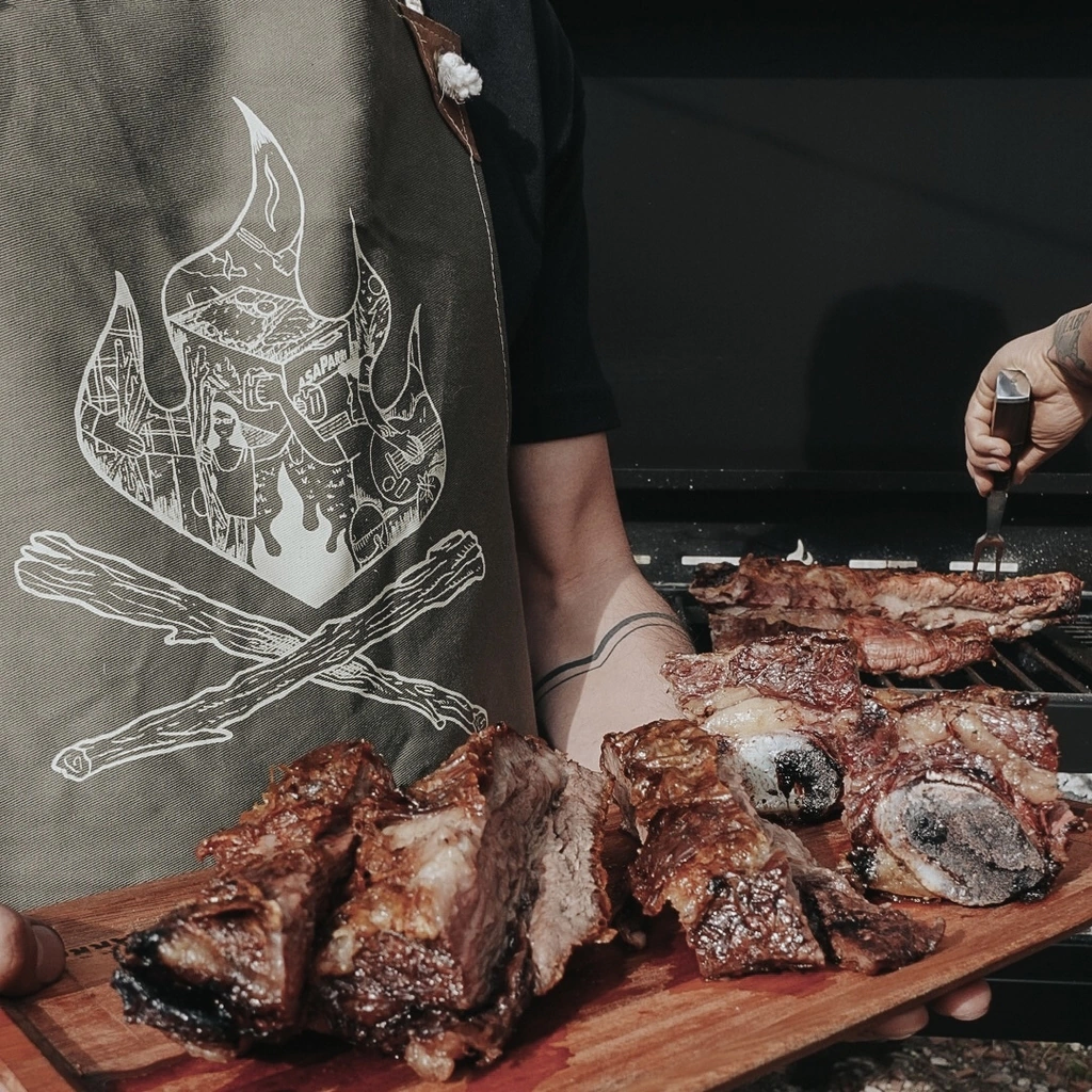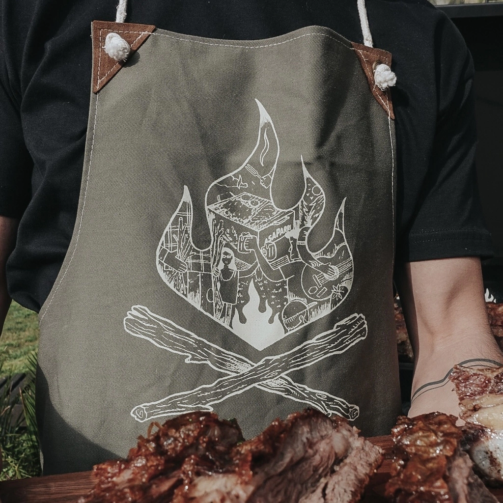 El delantal perfecto para un asaparrillero completo, con la icónica estampa “Fuego Asaparri” y un bolsillo amplio para tener todo a mano mientras cocinás.