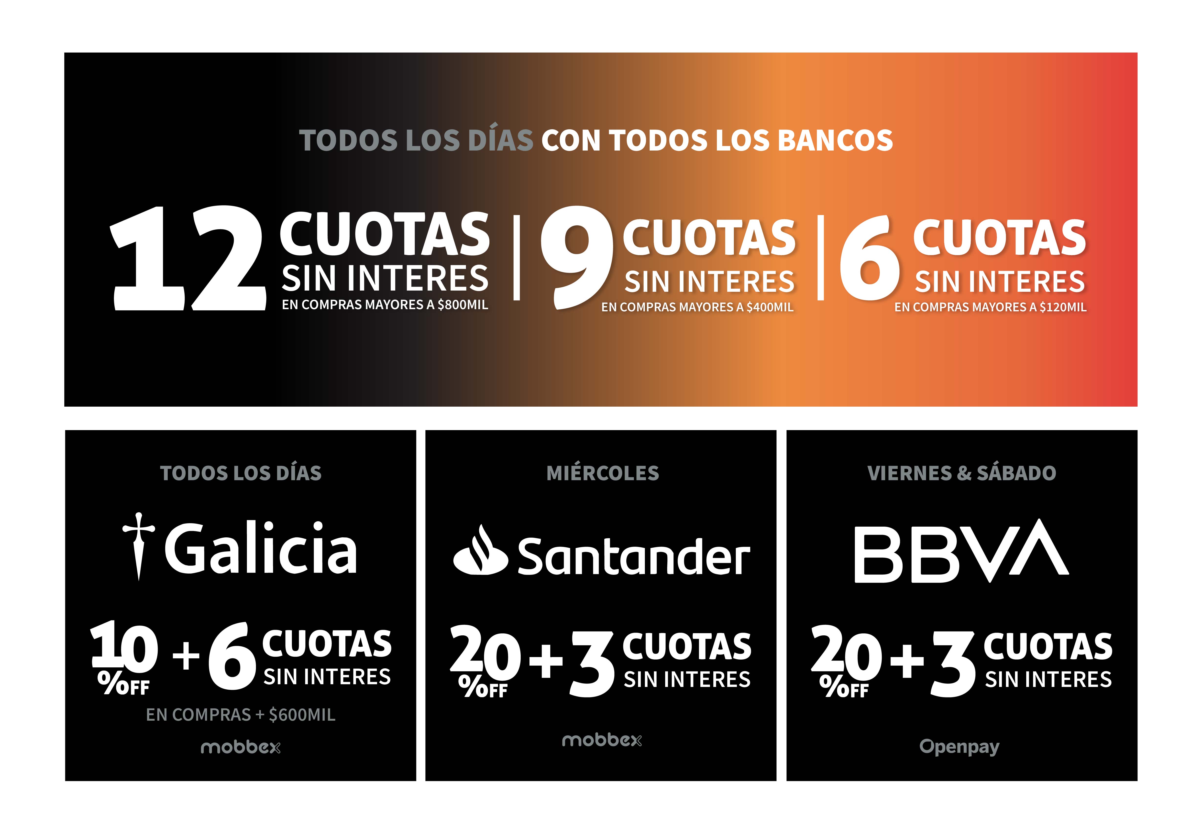 Caballito: BBVA, Santander, Galicia, 6 | 9 | 12 cuotas sin interes